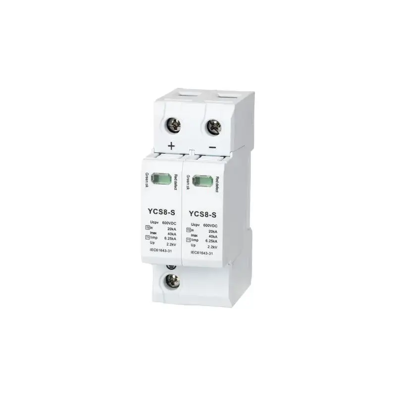 YCS8-S series Photovoltaic DC Surge Protective Device is applicable to photovoltaic power generation system. When surge overvoltage occurs in the system due to lightning stroke or other reasons, the protector immediately conducts in nanosecond time to introduce the surge overvoltage to the earth, thus protecting the electrical equipment on the grid.